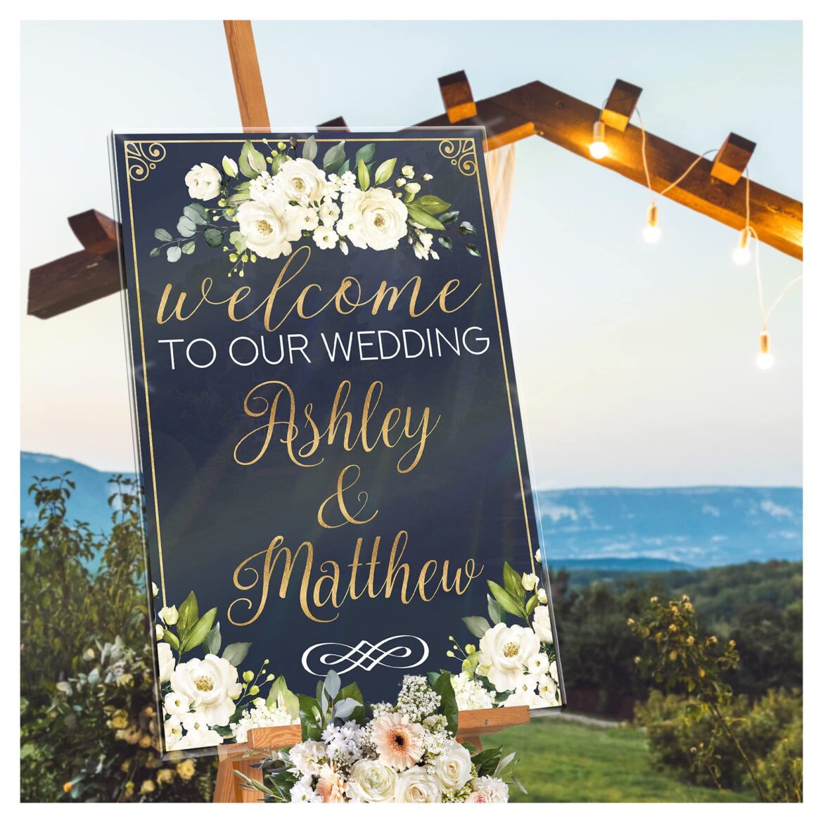 As your monogram is your event logo, you can elevate the design of your signage and make your welcome message extra special by including your monogram on your signs.